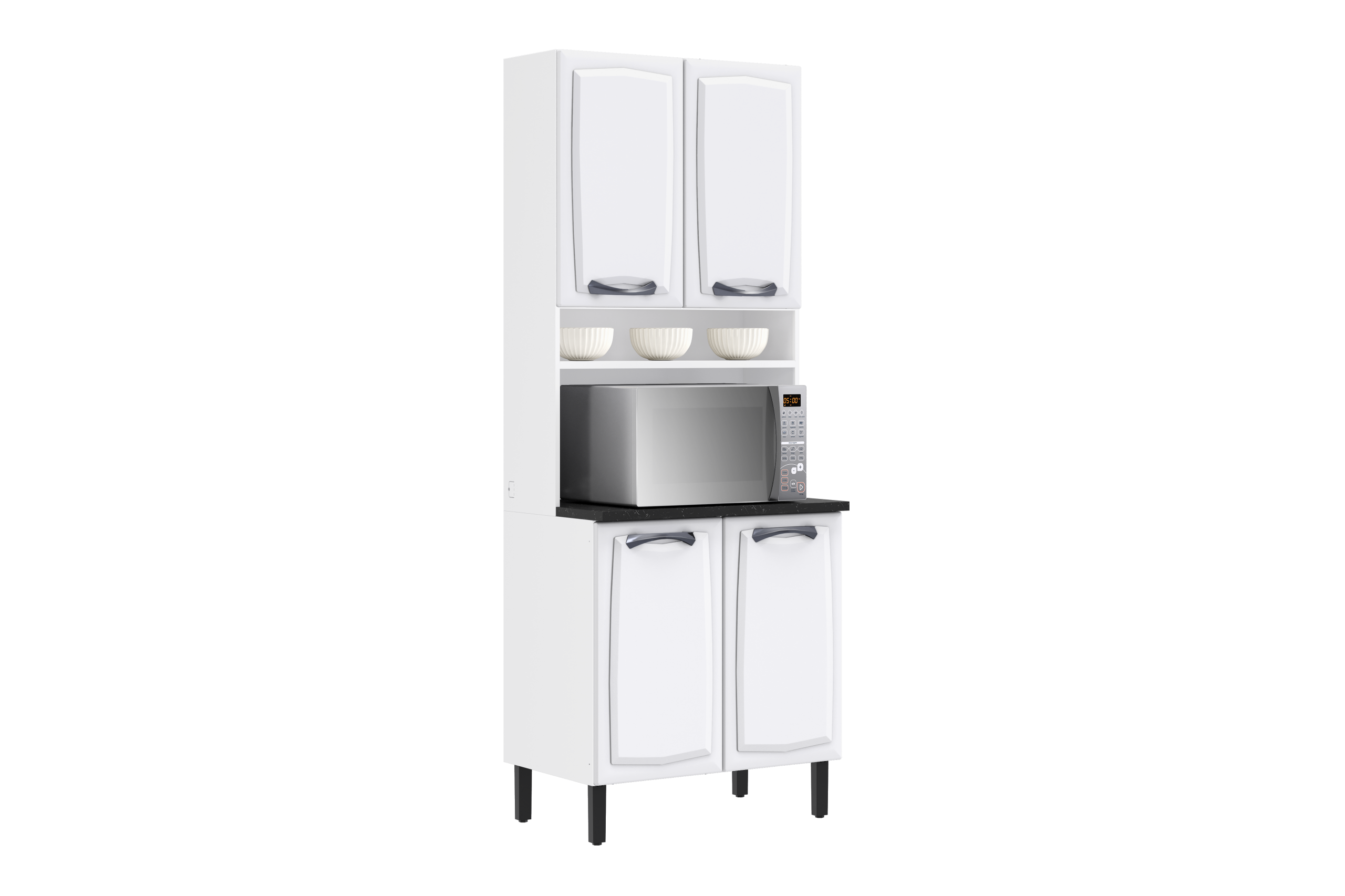 Praticidade e Organização: Múltiplos compartimentos para acomodar utensílios, mantimentos e eletrodomésticos com eficiência.
