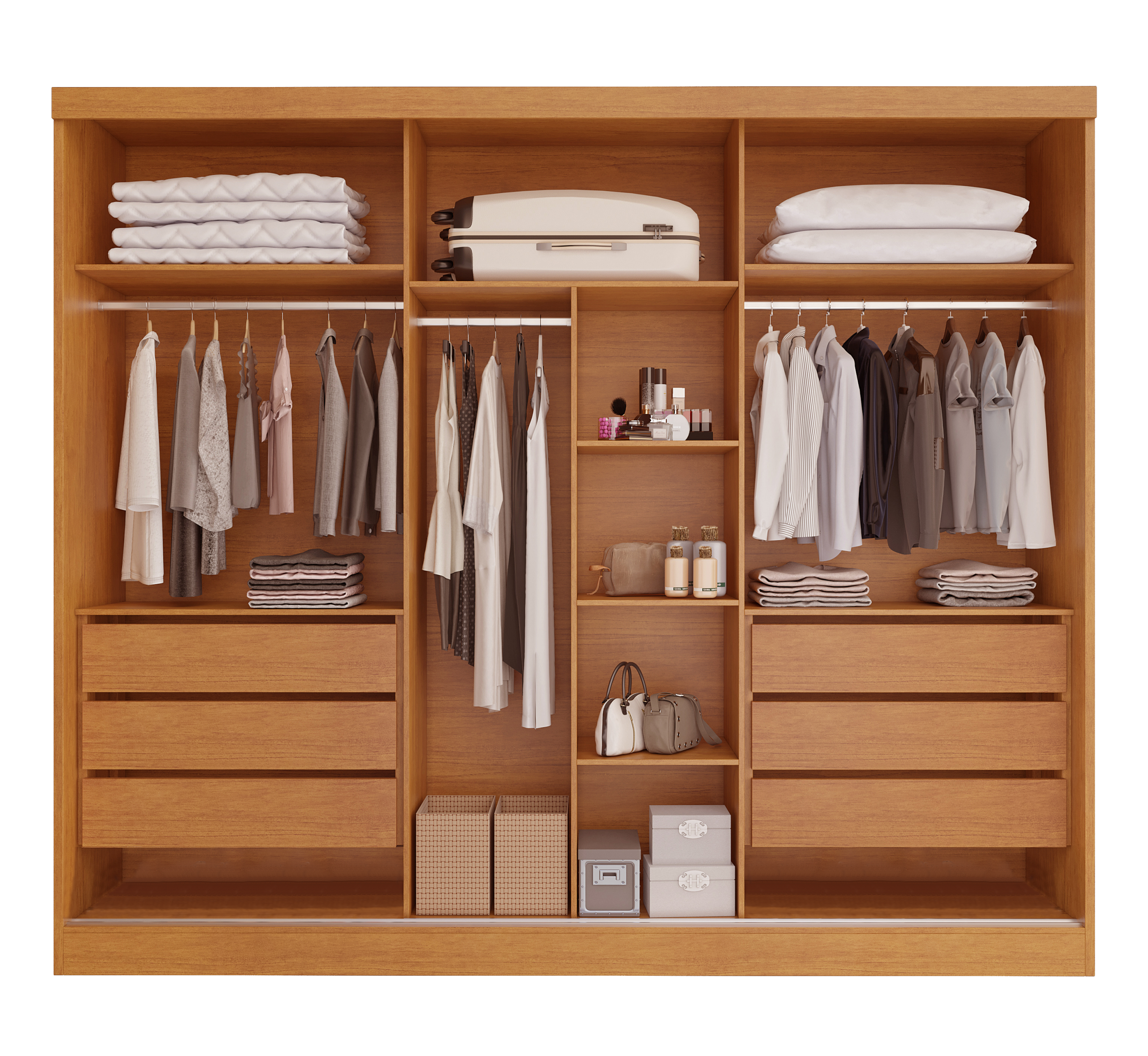 Um guarda-roupa 969138 com super espaço interno e  bem dividido para que você consiga organizar todos os seus pertences mais importantes. Fabricado em MDF, possui 3 portas de correr, sendo uma com espelho com película de segurança, 6 gavetas internas com corrediças telescópicas e fundo das gavetas em HDF, costas do roupeiro inteira, prateleiras centrais, espaço para roupas longas, 3 cabideiros de alumínio, puxadores nas portas em MDF, acabamento semi brilho, triho inferior em alumínio, trilho superior em ABS. Só benefícios para otimizar seu dia a dia e elevar o bom gosto do seu cantinho.