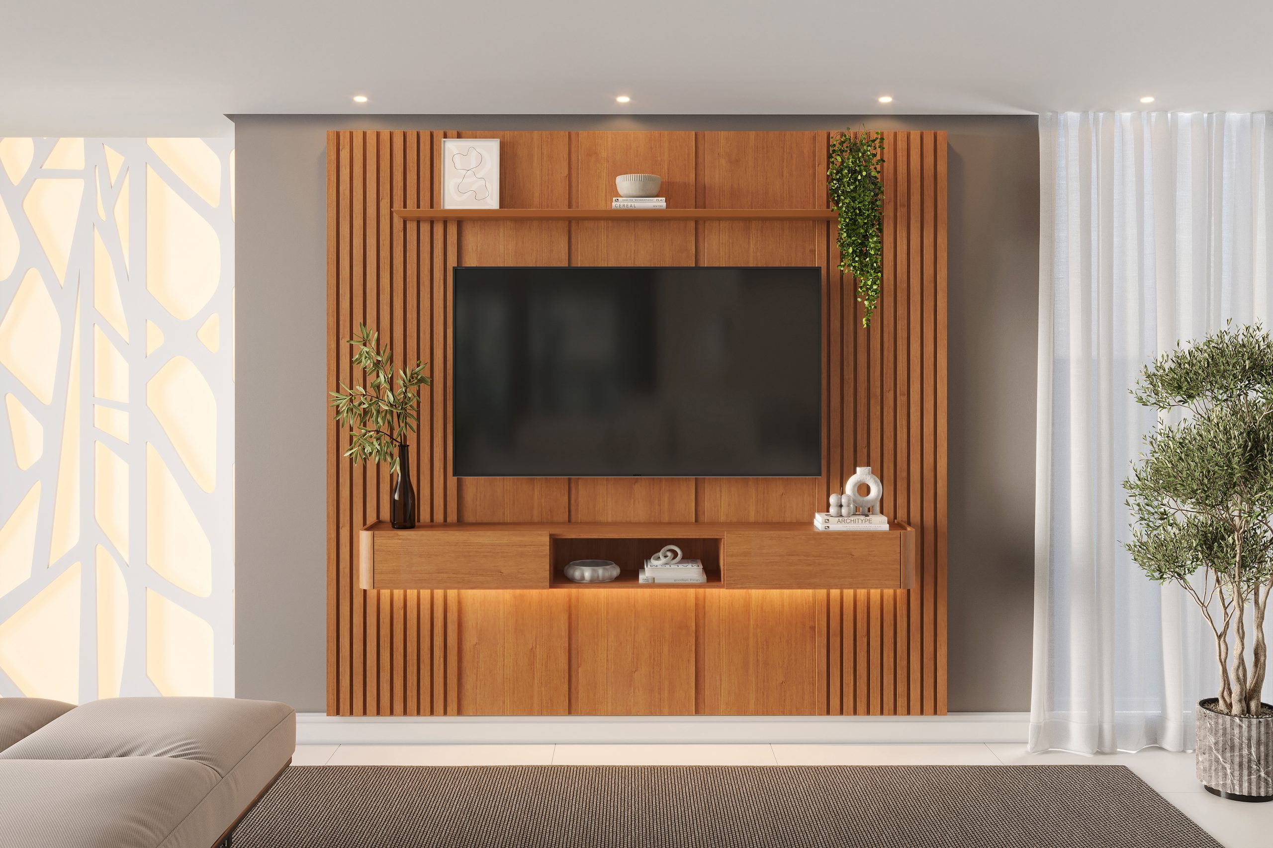 O Painel 9312912 traz um design moderno, sofisticado e inovador. Com detalhes ripados, sua sala de estar ficará ainda mais interessante.