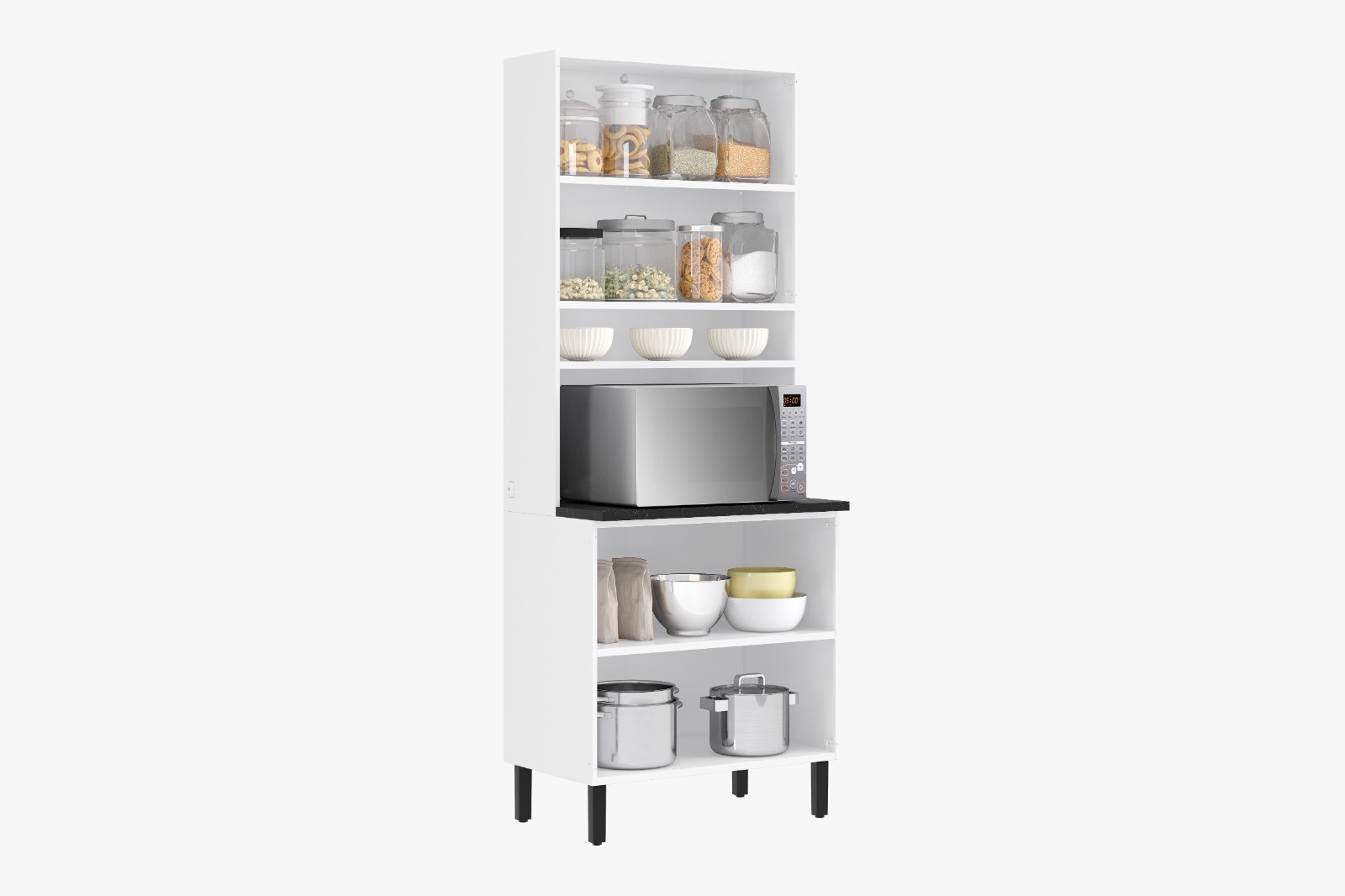 Não é incrível? O branco elegante deste móvel vai combinar perfeitamente com qualquer estilo de decoração, trazendo um toque de frescor e luminosidade para o ambiente. Além disso, a facilidade de limpeza e manutenção vai facilitar o seu dia a dia, para que você possa aproveitar mais momentos de diversão na cozinha!